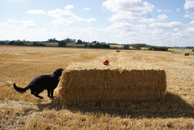 | Lulu and Tikki keeping cool. | Thor in the straw. | Mojo six months. | Lucy six months. |
